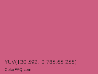 YUV 130.592,-0.785,65.256 Color is a normal rose color and the nearest color is Cinnamon Satin #cd607e. Hex code #cd5d81 and RGB value is rgb(205,93,129). In RGB color space, this color is composed of 80% red, 36% green, 51% blue, In CMYK color space, this color is composed of 0% cyan, 55% magenta, 37% yellow , 20% black , In HSL color space, this color has a hue angle of 341° , 53% saturation and 58% lightness.