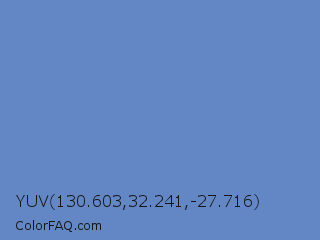 YUV 130.603,32.241,-27.716 Color is a normal blue color and the nearest color is Silver Lake Blue #5d89ba. Hex code #6386c4 and RGB value is rgb(99,134,196). In RGB color space, this color is composed of 39% red, 53% green, 77% blue, In CMYK color space, this color is composed of 49% cyan, 32% magenta, 0% yellow , 23% black , In HSL color space, this color has a hue angle of 218° , 45% saturation and 58% lightness.