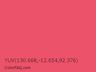 YUV 130.668,-12.654,92.376 Color is a light red color and the nearest color is Mandy #e25465. Hex code #ec5269 and RGB value is rgb(236,82,105). In RGB color space, this color is composed of 93% red, 32% green, 41% blue, In CMYK color space, this color is composed of 0% cyan, 65% magenta, 56% yellow , 7% black , In HSL color space, this color has a hue angle of 351° , 80% saturation and 62% lightness.