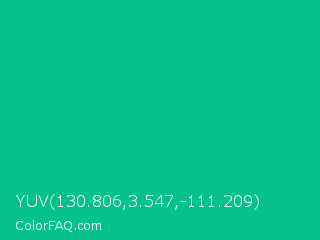 YUV 130.806,3.547,-111.209 Color is a normal green color and the nearest color is Caribbean Green #00cc99. Hex code #04c28a and RGB value is rgb(4,194,138). In RGB color space, this color is composed of 2% red, 76% green, 54% blue, In CMYK color space, this color is composed of 98% cyan, 0% magenta, 29% yellow , 24% black , In HSL color space, this color has a hue angle of 162° , 96% saturation and 39% lightness.