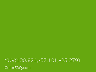 YUV 130.824,-57.101,-25.279 Color is a normal green color and the nearest color is Christi #67a712. Hex code #66a80f and RGB value is rgb(102,168,15). In RGB color space, this color is composed of 40% red, 66% green, 6% blue, In CMYK color space, this color is composed of 39% cyan, 0% magenta, 91% yellow , 34% black , In HSL color space, this color has a hue angle of 86° , 84% saturation and 36% lightness.