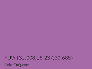 YUV 131.008,18.237,30.688 Color is a normal magenta color and the nearest color is Pearly Purple #b768a2. Hex code #a66aa8 and RGB value is rgb(166,106,168). In RGB color space, this color is composed of 65% red, 42% green, 66% blue, In CMYK color space, this color is composed of 1% cyan, 37% magenta, 0% yellow , 34% black , In HSL color space, this color has a hue angle of 298° , 26% saturation and 54% lightness.