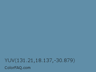 YUV 131.21,18.137,-30.879 Color is a normal blue color and the nearest color is Air Force Blue RAF #5d8aa8. Hex code #608ea8 and RGB value is rgb(96,142,168). In RGB color space, this color is composed of 38% red, 56% green, 66% blue, In CMYK color space, this color is composed of 43% cyan, 15% magenta, 0% yellow , 34% black , In HSL color space, this color has a hue angle of 202° , 29% saturation and 52% lightness.