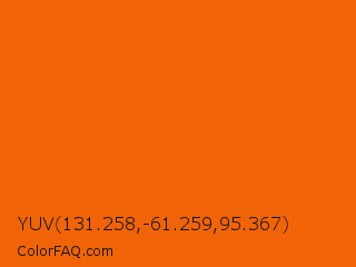 YUV 131.258,-61.259,95.367 Color is a normal orange color and the nearest color is Spanish Orange #e86100. Hex code #f06407 and RGB value is rgb(240,100,7). In RGB color space, this color is composed of 94% red, 39% green, 3% blue, In CMYK color space, this color is composed of 0% cyan, 58% magenta, 97% yellow , 6% black , In HSL color space, this color has a hue angle of 24° , 94% saturation and 48% lightness.