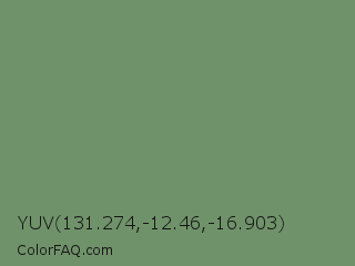YUV 131.274,-12.46,-16.903 Color is a normal green color and the nearest color is Highland #6f8e63. Hex code #70926a and RGB value is rgb(112,146,106). In RGB color space, this color is composed of 44% red, 57% green, 42% blue, In CMYK color space, this color is composed of 23% cyan, 0% magenta, 27% yellow , 43% black , In HSL color space, this color has a hue angle of 111° , 16% saturation and 49% lightness.