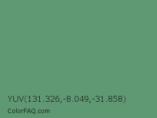 YUV 131.326,-8.049,-31.858 Color is a normal green color and the nearest color is Aqua Forest #5fa777. Hex code #5f9973 and RGB value is rgb(95,153,115). In RGB color space, this color is composed of 37% red, 60% green, 45% blue, In CMYK color space, this color is composed of 38% cyan, 0% magenta, 25% yellow , 40% black , In HSL color space, this color has a hue angle of 141° , 23% saturation and 49% lightness.