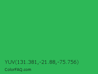 YUV 131.381,-21.88,-75.756 Color is a normal green color and the nearest color is Chateau Green #40a860. Hex code #2db857 and RGB value is rgb(45,184,87). In RGB color space, this color is composed of 18% red, 72% green, 34% blue, In CMYK color space, this color is composed of 76% cyan, 0% magenta, 53% yellow , 28% black , In HSL color space, this color has a hue angle of 138° , 61% saturation and 45% lightness.