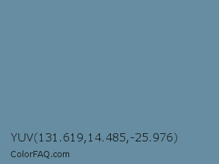 YUV 131.619,14.485,-25.976 Color is a normal blue color and the nearest color is Bermuda Gray #6b8ba2. Hex code #668da1 and RGB value is rgb(102,141,161). In RGB color space, this color is composed of 40% red, 55% green, 63% blue, In CMYK color space, this color is composed of 37% cyan, 12% magenta, 0% yellow , 37% black , In HSL color space, this color has a hue angle of 200° , 24% saturation and 52% lightness.