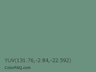YUV 131.76,-2.84,-22.592 Color is a normal green color and the nearest color is Laurel #749378. Hex code #6a927e and RGB value is rgb(106,146,126). In RGB color space, this color is composed of 42% red, 57% green, 49% blue, In CMYK color space, this color is composed of 27% cyan, 0% magenta, 14% yellow , 43% black , In HSL color space, this color has a hue angle of 150° , 16% saturation and 49% lightness.
