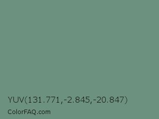 YUV 131.771,-2.845,-20.847 Color is a normal green color and the nearest color is Laurel #749378. Hex code #6c917e and RGB value is rgb(108,145,126). In RGB color space, this color is composed of 42% red, 57% green, 49% blue, In CMYK color space, this color is composed of 26% cyan, 0% magenta, 13% yellow , 43% black , In HSL color space, this color has a hue angle of 149° , 15% saturation and 50% lightness.