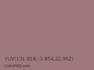 YUV 131.818,-3.854,22.962 Color is a normal red color and the nearest color is Bazaar #98777b. Hex code #9e787c and RGB value is rgb(158,120,124). In RGB color space, this color is composed of 62% red, 47% green, 49% blue, In CMYK color space, this color is composed of 0% cyan, 24% magenta, 22% yellow , 38% black , In HSL color space, this color has a hue angle of 354° , 16% saturation and 55% lightness.