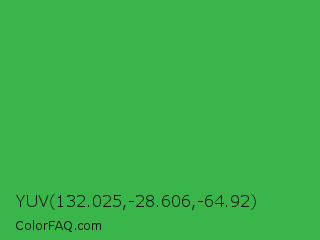 YUV 132.025,-28.606,-64.92 Color is a normal green color and the nearest color is Wageningen Green #34b233. Hex code #3ab54a and RGB value is rgb(58,181,74). In RGB color space, this color is composed of 23% red, 71% green, 29% blue, In CMYK color space, this color is composed of 68% cyan, 0% magenta, 59% yellow , 29% black , In HSL color space, this color has a hue angle of 128° , 51% saturation and 47% lightness.
