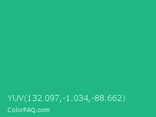 YUV 132.097,-1.034,-88.662 Color is a normal green color and the nearest color is Mountain Meadow Crayola #1ab385. Hex code #1fb882 and RGB value is rgb(31,184,130). In RGB color space, this color is composed of 12% red, 72% green, 51% blue, In CMYK color space, this color is composed of 83% cyan, 0% magenta, 29% yellow , 28% black , In HSL color space, this color has a hue angle of 159° , 71% saturation and 42% lightness.