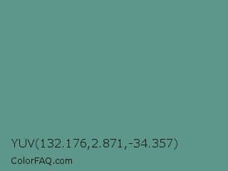 YUV 132.176,2.871,-34.357 Color is a normal cyan color and the nearest color is Patina #639a8f. Hex code #5d978a and RGB value is rgb(93,151,138). In RGB color space, this color is composed of 36% red, 59% green, 54% blue, In CMYK color space, this color is composed of 38% cyan, 0% magenta, 9% yellow , 41% black , In HSL color space, this color has a hue angle of 167° , 24% saturation and 48% lightness.