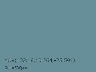 YUV 132.18,10.264,-25.591 Color is a normal cyan color and the nearest color is Juniper #6d9292. Hex code #678f99 and RGB value is rgb(103,143,153). In RGB color space, this color is composed of 40% red, 56% green, 60% blue, In CMYK color space, this color is composed of 33% cyan, 7% magenta, 0% yellow , 40% black , In HSL color space, this color has a hue angle of 192° , 20% saturation and 50% lightness.