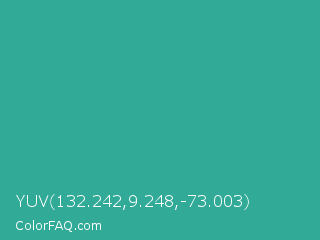 YUV 132.242,9.248,-73.003 Color is a normal cyan color and the nearest color is Keppel #3ab09e. Hex code #31ab97 and RGB value is rgb(49,171,151). In RGB color space, this color is composed of 19% red, 67% green, 59% blue, In CMYK color space, this color is composed of 71% cyan, 0% magenta, 12% yellow , 33% black , In HSL color space, this color has a hue angle of 170° , 55% saturation and 43% lightness.