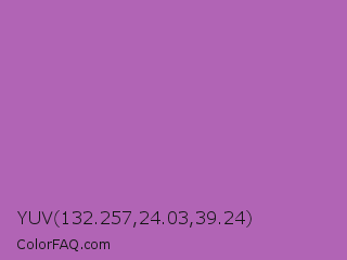 YUV 132.257,24.03,39.24 Color is a normal magenta color and the nearest color is Pearly Purple #b768a2. Hex code #b164b5 and RGB value is rgb(177,100,181). In RGB color space, this color is composed of 69% red, 39% green, 71% blue, In CMYK color space, this color is composed of 2% cyan, 45% magenta, 0% yellow , 29% black , In HSL color space, this color has a hue angle of 297° , 35% saturation and 55% lightness.