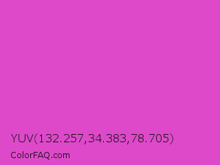 YUV 132.257,34.383,78.705 Color is a normal magenta color and the nearest color is Steel Pink #cc33cc. Hex code #de49ca and RGB value is rgb(222,73,202). In RGB color space, this color is composed of 87% red, 29% green, 79% blue, In CMYK color space, this color is composed of 0% cyan, 67% magenta, 9% yellow , 13% black , In HSL color space, this color has a hue angle of 308° , 69% saturation and 58% lightness.