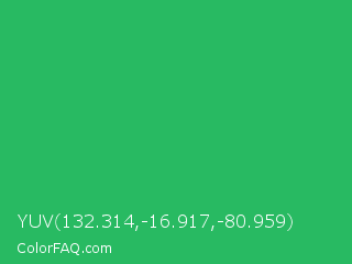 YUV 132.314,-16.917,-80.959 Color is a normal green color and the nearest color is Medium Sea Green #3cb371. Hex code #28ba62 and RGB value is rgb(40,186,98). In RGB color space, this color is composed of 16% red, 73% green, 38% blue, In CMYK color space, this color is composed of 78% cyan, 0% magenta, 47% yellow , 27% black , In HSL color space, this color has a hue angle of 144° , 65% saturation and 44% lightness.