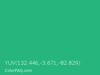 YUV 132.446,-3.671,-82.829 Color is a normal green color and the nearest color is Mountain Meadow Crayola #1ab385. Hex code #26b67d and RGB value is rgb(38,182,125). In RGB color space, this color is composed of 15% red, 71% green, 49% blue, In CMYK color space, this color is composed of 79% cyan, 0% magenta, 31% yellow , 29% black , In HSL color space, this color has a hue angle of 156° , 65% saturation and 43% lightness.