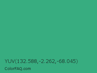 YUV 132.588,-2.262,-68.045 Color is a normal green color and the nearest color is Ocean Green #41aa78. Hex code #37ad80 and RGB value is rgb(55,173,128). In RGB color space, this color is composed of 22% red, 68% green, 50% blue, In CMYK color space, this color is composed of 68% cyan, 0% magenta, 26% yellow , 32% black , In HSL color space, this color has a hue angle of 157° , 52% saturation and 45% lightness.