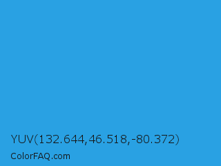 YUV 132.644,46.518,-80.372 Color is a normal blue color and the nearest color is Button Blue #24a0ed. Hex code #29a1e3 and RGB value is rgb(41,161,227). In RGB color space, this color is composed of 16% red, 63% green, 89% blue, In CMYK color space, this color is composed of 82% cyan, 29% magenta, 0% yellow , 11% black , In HSL color space, this color has a hue angle of 201° , 77% saturation and 53% lightness.