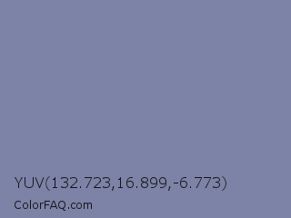 YUV 132.723,16.899,-6.773 Color is a normal blue color and the nearest color is Shadow Blue #778ba5. Hex code #7d82a7 and RGB value is rgb(125,130,167). In RGB color space, this color is composed of 49% red, 51% green, 65% blue, In CMYK color space, this color is composed of 25% cyan, 22% magenta, 0% yellow , 35% black , In HSL color space, this color has a hue angle of 233° , 19% saturation and 57% lightness.