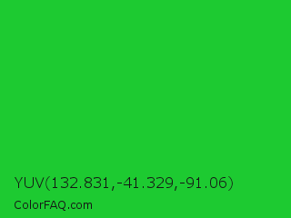 YUV 132.831,-41.329,-91.06 Color is a normal green color and the nearest color is Lime Green #32cd32. Hex code #1dca31 and RGB value is rgb(29,202,49). In RGB color space, this color is composed of 11% red, 79% green, 19% blue, In CMYK color space, this color is composed of 86% cyan, 0% magenta, 76% yellow , 21% black , In HSL color space, this color has a hue angle of 127° , 75% saturation and 45% lightness.
