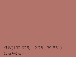 YUV 132.925,-12.781,39.531 Color is a normal red color and the nearest color is Copper Penny #ad6f69. Hex code #b2736b and RGB value is rgb(178,115,107). In RGB color space, this color is composed of 70% red, 45% green, 42% blue, In CMYK color space, this color is composed of 0% cyan, 35% magenta, 40% yellow , 30% black , In HSL color space, this color has a hue angle of 7° , 32% saturation and 56% lightness.