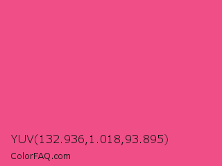 YUV 132.936,1.018,93.895 Color is a light rose color and the nearest color is French Rose #f64a8a. Hex code #f04e87 and RGB value is rgb(240,78,135). In RGB color space, this color is composed of 94% red, 31% green, 53% blue, In CMYK color space, this color is composed of 0% cyan, 68% magenta, 44% yellow , 6% black , In HSL color space, this color has a hue angle of 339° , 84% saturation and 62% lightness.