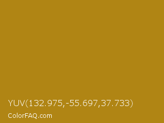 YUV 132.975,-55.697,37.733 Color is a normal orange color and the nearest color is Dark Goldenrod #b8860b. Hex code #b08514 and RGB value is rgb(176,133,20). In RGB color space, this color is composed of 69% red, 52% green, 8% blue, In CMYK color space, this color is composed of 0% cyan, 24% magenta, 89% yellow , 31% black , In HSL color space, this color has a hue angle of 43° , 80% saturation and 38% lightness.