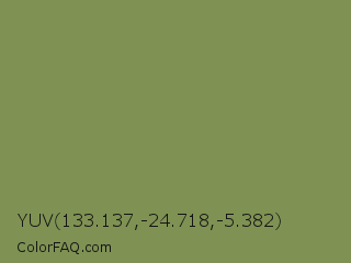 YUV 133.137,-24.718,-5.382 Color is a normal lime color and the nearest color is Moss Green #8a9a5b. Hex code #7f9253 and RGB value is rgb(127,146,83). In RGB color space, this color is composed of 50% red, 57% green, 33% blue, In CMYK color space, this color is composed of 13% cyan, 0% magenta, 43% yellow , 43% black , In HSL color space, this color has a hue angle of 78° , 28% saturation and 45% lightness.