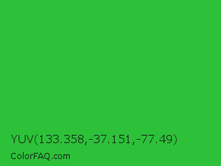 YUV 133.358,-37.151,-77.49 Color is a normal green color and the nearest color is Lime Green #32cd32. Hex code #2dc13a and RGB value is rgb(45,193,58). In RGB color space, this color is composed of 18% red, 76% green, 23% blue, In CMYK color space, this color is composed of 77% cyan, 0% magenta, 70% yellow , 24% black , In HSL color space, this color has a hue angle of 125° , 62% saturation and 47% lightness.
