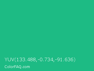 YUV 133.488,-0.734,-91.636 Color is a normal green color and the nearest color is Mountain Meadow Crayola #1ab385. Hex code #1dbb84 and RGB value is rgb(29,187,132). In RGB color space, this color is composed of 11% red, 73% green, 52% blue, In CMYK color space, this color is composed of 84% cyan, 0% magenta, 29% yellow , 27% black , In HSL color space, this color has a hue angle of 159° , 73% saturation and 42% lightness.