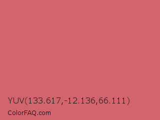 YUV 133.617,-12.136,66.111 Color is a light red color and the nearest color is Fuzzy Wuzzy #cc6666. Hex code #d1646d and RGB value is rgb(209,100,109). In RGB color space, this color is composed of 82% red, 39% green, 43% blue, In CMYK color space, this color is composed of 0% cyan, 52% magenta, 48% yellow , 18% black , In HSL color space, this color has a hue angle of 355° , 54% saturation and 61% lightness.