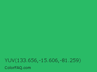 YUV 133.656,-15.606,-81.259 Color is a normal green color and the nearest color is Medium Sea Green #3cb371. Hex code #29bb66 and RGB value is rgb(41,187,102). In RGB color space, this color is composed of 16% red, 73% green, 40% blue, In CMYK color space, this color is composed of 78% cyan, 0% magenta, 45% yellow , 27% black , In HSL color space, this color has a hue angle of 145° , 64% saturation and 45% lightness.