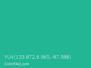 YUV 133.872,6.965,-87.588 Color is a normal cyan color and the nearest color is Mountain Meadow #30ba8f. Hex code #22b694 and RGB value is rgb(34,182,148). In RGB color space, this color is composed of 13% red, 71% green, 58% blue, In CMYK color space, this color is composed of 81% cyan, 0% magenta, 19% yellow , 29% black , In HSL color space, this color has a hue angle of 166° , 69% saturation and 42% lightness.