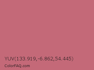 YUV 133.919,-6.862,54.445 Color is a normal red color and the nearest color is Rose Gold #b76e79. Hex code #c46978 and RGB value is rgb(196,105,120). In RGB color space, this color is composed of 77% red, 41% green, 47% blue, In CMYK color space, this color is composed of 0% cyan, 46% magenta, 39% yellow , 23% black , In HSL color space, this color has a hue angle of 350° , 44% saturation and 59% lightness.