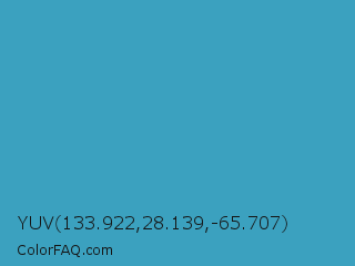 YUV 133.922,28.139,-65.707 Color is a normal blue color and the nearest color is Pelorous #3eabbf. Hex code #3ba1bf and RGB value is rgb(59,161,191). In RGB color space, this color is composed of 23% red, 63% green, 75% blue, In CMYK color space, this color is composed of 69% cyan, 16% magenta, 0% yellow , 25% black , In HSL color space, this color has a hue angle of 194° , 53% saturation and 49% lightness.
