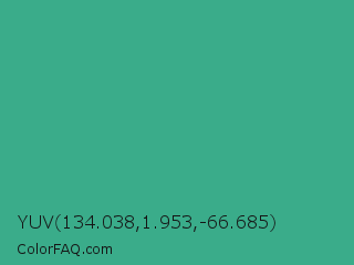 YUV 134.038,1.953,-66.685 Color is a normal green color and the nearest color is Zomp #39a78e. Hex code #3aac8a and RGB value is rgb(58,172,138). In RGB color space, this color is composed of 23% red, 67% green, 54% blue, In CMYK color space, this color is composed of 66% cyan, 0% magenta, 20% yellow , 33% black , In HSL color space, this color has a hue angle of 162° , 50% saturation and 45% lightness.