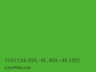 YUV 134.095,-41.459,-49.195 Color is a normal green color and the nearest color is Apple #4fa83d. Hex code #4eb332 and RGB value is rgb(78,179,50). In RGB color space, this color is composed of 31% red, 70% green, 20% blue, In CMYK color space, this color is composed of 56% cyan, 0% magenta, 72% yellow , 30% black , In HSL color space, this color has a hue angle of 107° , 56% saturation and 45% lightness.