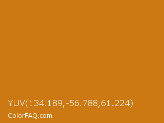 YUV 134.189,-56.788,61.224 Color is a normal orange color and the nearest color is Meteor #d07d12. Hex code #cc7913 and RGB value is rgb(204,121,19). In RGB color space, this color is composed of 80% red, 47% green, 7% blue, In CMYK color space, this color is composed of 0% cyan, 41% magenta, 91% yellow , 20% black , In HSL color space, this color has a hue angle of 33° , 83% saturation and 44% lightness.