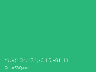 YUV 134.474,-6.15,-81.1 Color is a normal green color and the nearest color is Jungle Green #29ab87. Hex code #2ab87a and RGB value is rgb(42,184,122). In RGB color space, this color is composed of 16% red, 72% green, 48% blue, In CMYK color space, this color is composed of 77% cyan, 0% magenta, 34% yellow , 28% black , In HSL color space, this color has a hue angle of 154° , 63% saturation and 44% lightness.