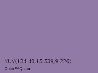 YUV 134.48,15.539,9.226 Color is a normal purple color and the nearest color is Lavender Purple #967bb6. Hex code #917ba6 and RGB value is rgb(145,123,166). In RGB color space, this color is composed of 57% red, 48% green, 65% blue, In CMYK color space, this color is composed of 13% cyan, 26% magenta, 0% yellow , 35% black , In HSL color space, this color has a hue angle of 271° , 19% saturation and 57% lightness.