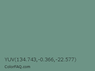 YUV 134.743,-0.366,-22.577 Color is a normal green color and the nearest color is Juniper #6d9292. Hex code #6d9486 and RGB value is rgb(109,148,134). In RGB color space, this color is composed of 43% red, 58% green, 53% blue, In CMYK color space, this color is composed of 26% cyan, 0% magenta, 9% yellow , 42% black , In HSL color space, this color has a hue angle of 158° , 15% saturation and 50% lightness.