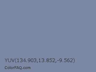 YUV 134.903,13.852,-9.562 Color is a normal blue color and the nearest color is Shadow Blue #778ba5. Hex code #7c87a3 and RGB value is rgb(124,135,163). In RGB color space, this color is composed of 49% red, 53% green, 64% blue, In CMYK color space, this color is composed of 24% cyan, 17% magenta, 0% yellow , 36% black , In HSL color space, this color has a hue angle of 223° , 17% saturation and 56% lightness.