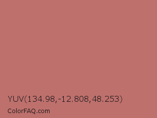 YUV 134.98,-12.808,48.253 Color is a normal red color and the nearest color is Contessa #c6726b. Hex code #be706d and RGB value is rgb(190,112,109). In RGB color space, this color is composed of 75% red, 44% green, 43% blue, In CMYK color space, this color is composed of 0% cyan, 41% magenta, 43% yellow , 25% black , In HSL color space, this color has a hue angle of 2° , 38% saturation and 59% lightness.