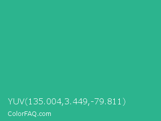 YUV 135.004,3.449,-79.811 Color is a normal green color and the nearest color is Mountain Meadow #30ba8f. Hex code #2cb48e and RGB value is rgb(44,180,142). In RGB color space, this color is composed of 17% red, 71% green, 56% blue, In CMYK color space, this color is composed of 76% cyan, 0% magenta, 21% yellow , 29% black , In HSL color space, this color has a hue angle of 163° , 61% saturation and 44% lightness.