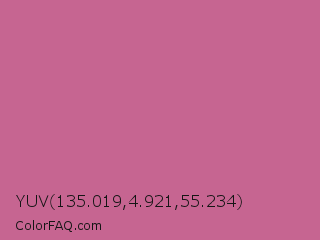 YUV 135.019,4.921,55.234 Color is a normal rose color and the nearest color is Hopbush #d06da1. Hex code #c66591 and RGB value is rgb(198,101,145). In RGB color space, this color is composed of 78% red, 40% green, 57% blue, In CMYK color space, this color is composed of 0% cyan, 49% magenta, 27% yellow , 22% black , In HSL color space, this color has a hue angle of 333° , 46% saturation and 59% lightness.