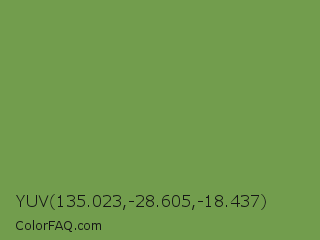 YUV 135.023,-28.605,-18.437 Color is a normal green color and the nearest color is Palm Leaf #6f9940. Hex code #729d4d and RGB value is rgb(114,157,77). In RGB color space, this color is composed of 45% red, 62% green, 30% blue, In CMYK color space, this color is composed of 27% cyan, 0% magenta, 51% yellow , 38% black , In HSL color space, this color has a hue angle of 92° , 34% saturation and 46% lightness.